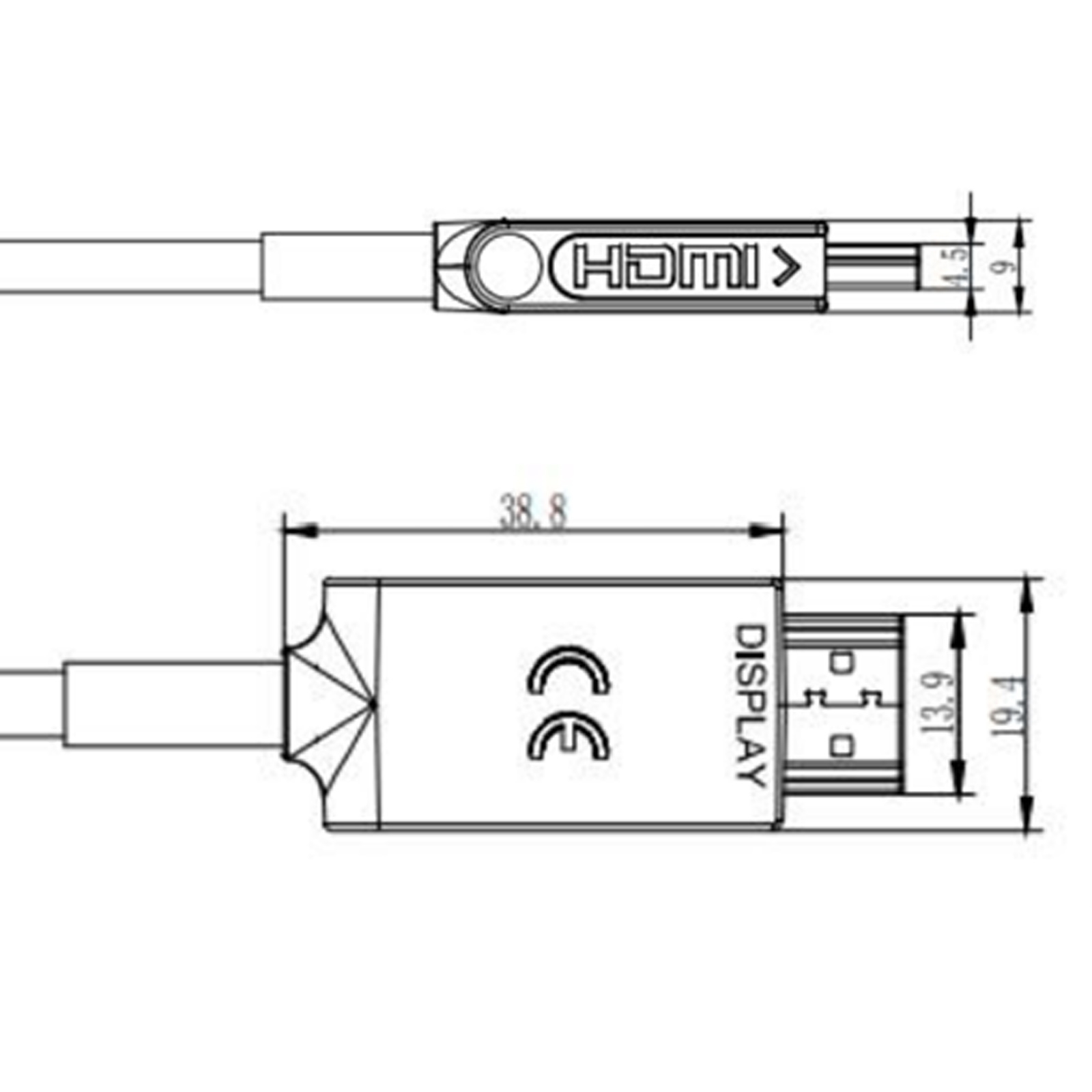 Die Laufrichtung des HDMI-Kabels ist zur einfachen Identifizierung über Source & Display auf den Stecker gedruckt.