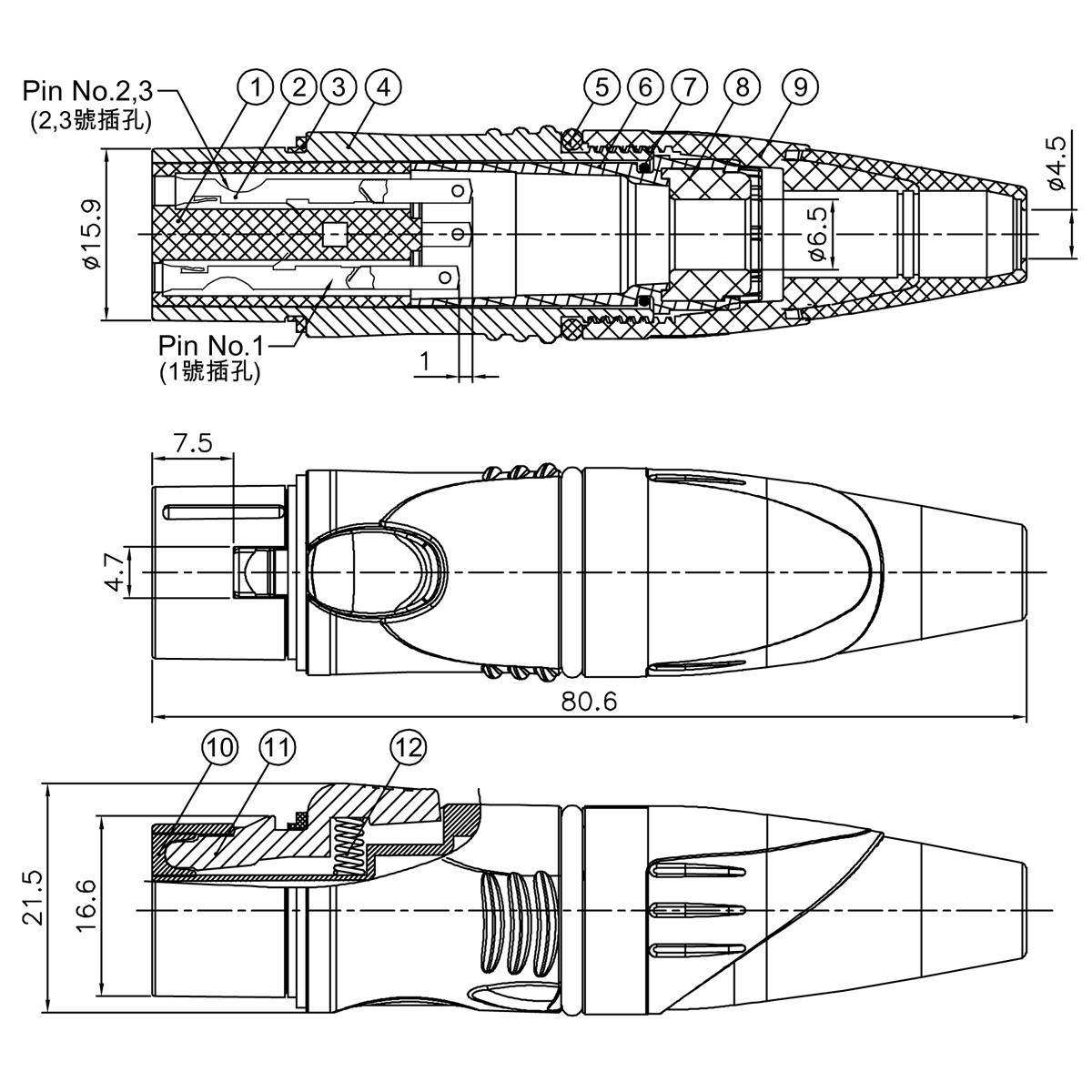Der 3-polige XLR Connector verfügt über eine dreifach positionierte Klemme, um zu vermeiden, dass das Innenkabel zusammengedreht und gebrochen wird.